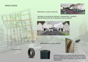 Como solución al transeúnte y residente que circula por el barrio se propone una intervención mayor tipo acupuntura urbana en la que ciertos sectores del barrio se modificaran sin cambiar el uso para no afectar a comerciantes, por una parte se creará un colchón acústico verde entre la calle y las viviendas o comercio, en otros sectores se pondrá adoquines para disminuir la velocidad vehicular, esto último a largo plazo obligará a los vehículos utilizar otras rutas o cambiar al transporte público.