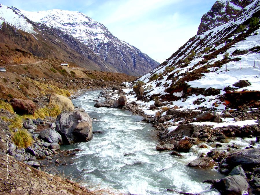 3.- Limita al oeste por la confluencia con el Río Maipo, donde se ubica la estación pluviométrica y de calidad de aguas superficiales Los Queltehues, y al este por el límite fronterizo Chileno-Argentino.