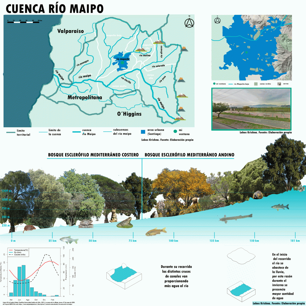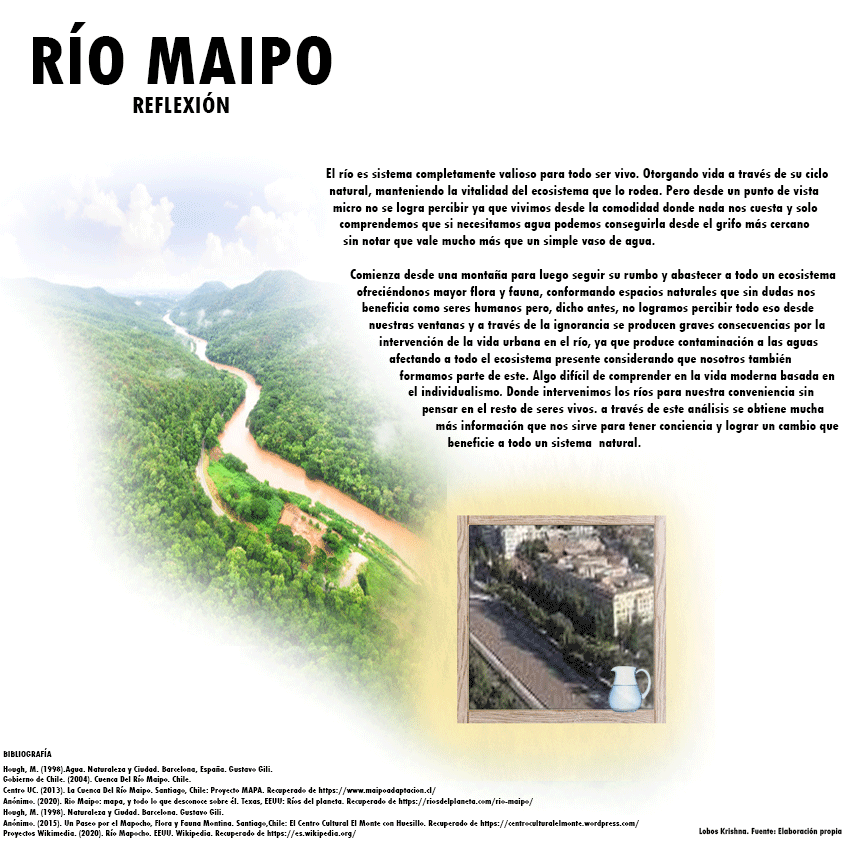 Este análisis observando desde lo macro con la cuenca río Maipo a lo micro con la subcuenca río Mapocho, logramos reconocer lo importante del río para los seres vivos y la naturaleza reconociéndolo como un sistema que actúa de forma eficiente. conteniendo ciertas características relevantes para la vida, ofreciendo un análisis crítico de conciencia a nuestros actos como seres humanos.