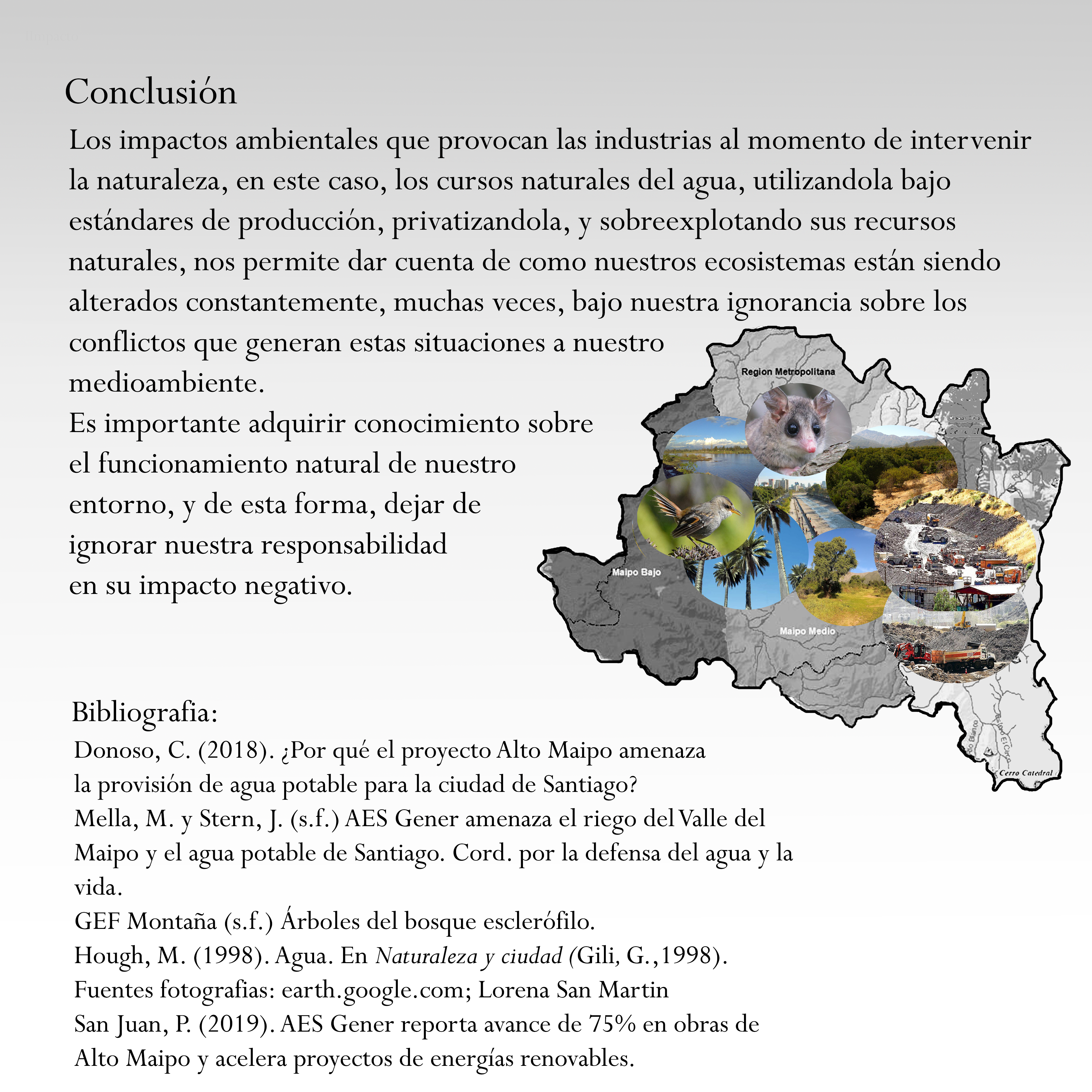 Mella, M. y Stern, J. (s.f.) AES Gener amenaza el riego del Valle del Maipo y el agua potable de Santiago. Cord. Por la defensa del agua y la vida. http://www.derechoalagua.cl/mapa-de-conflictos/aes-gener-amenaza-el-riego-del-valle-del-maipo-y-el-agua-potable-de-santiago/