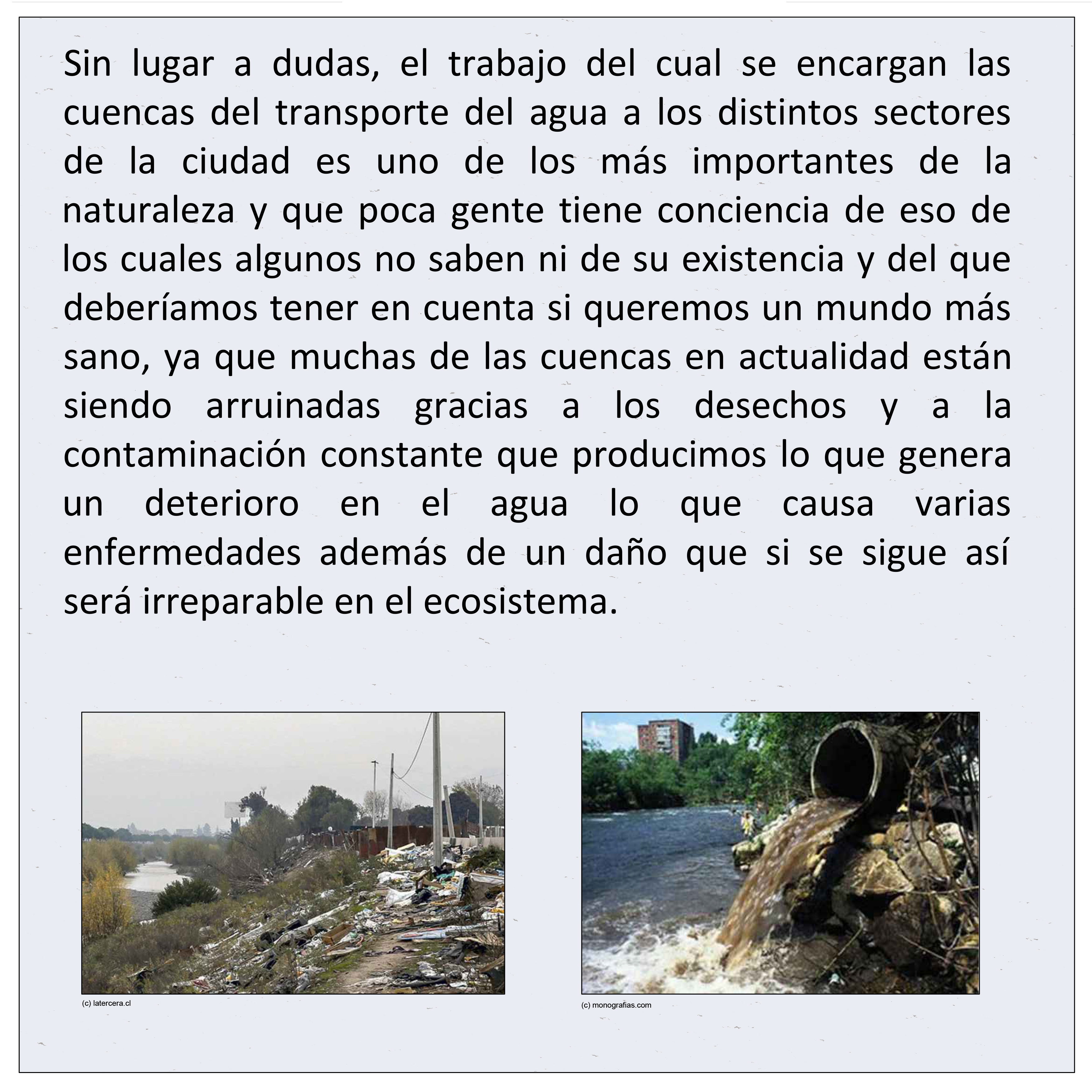 En el siguiente encargo del que investigué es la cuenca del Río Maipo, en la subcuenca del Río Mapocho Bajo, además se hablará acerca de como las cuencas a pesar de que la gente no tenga un conocimiento de ellas son muy importantes para el ecosistema y para nuestra vida como sociedad y de las que tenemos que tener en cuenta si queremos evitar algún tipo de desastre ecológico en un futuro.