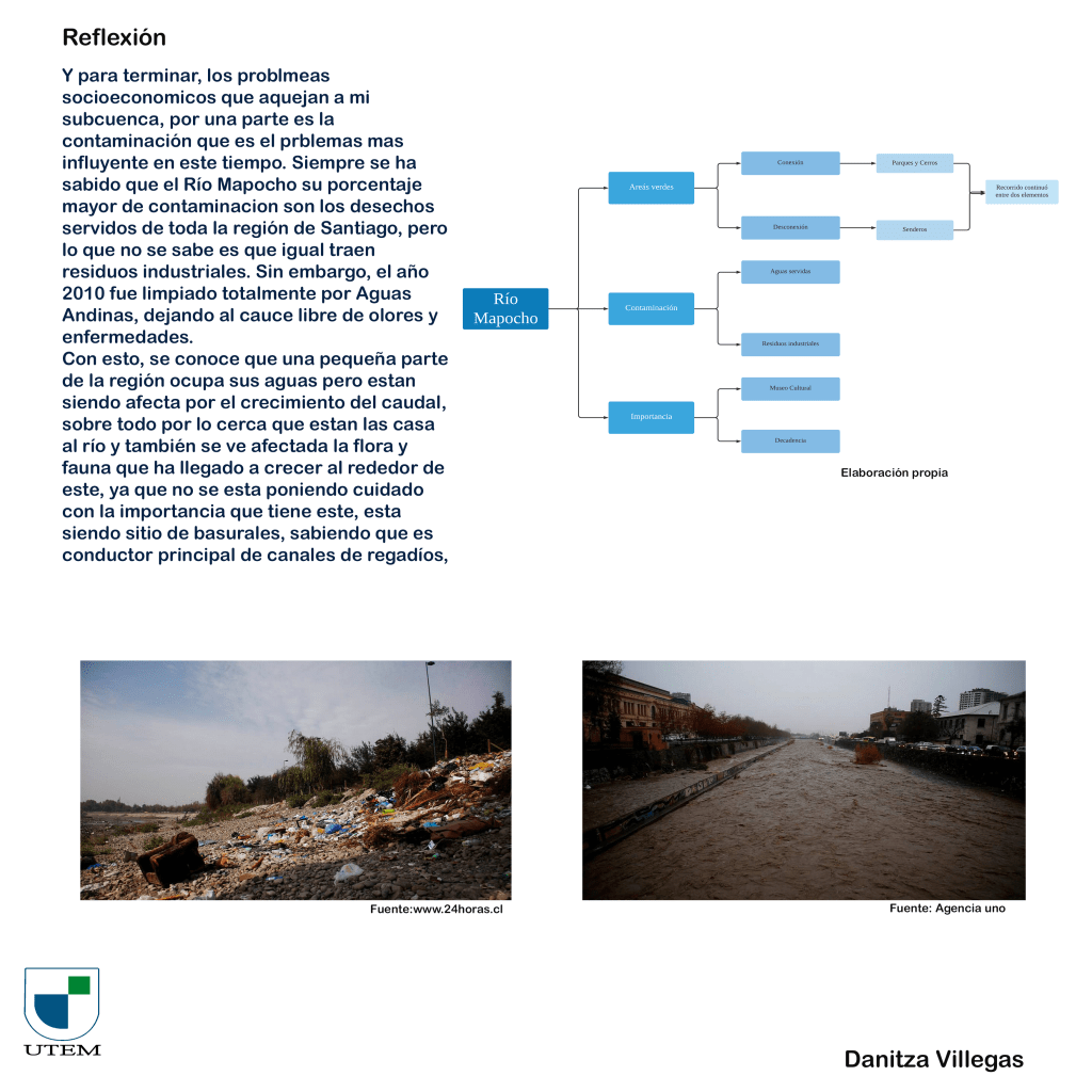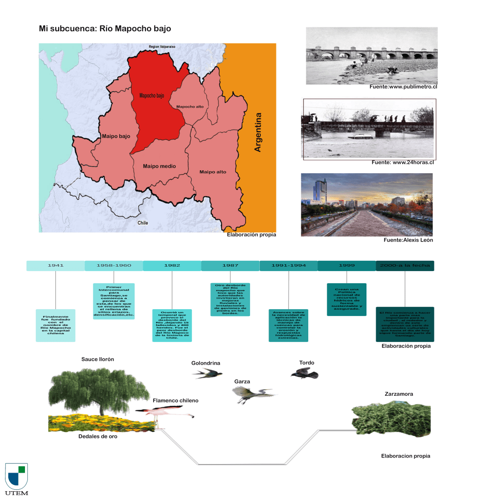 -construmine.webnode.cl/l/hidrologia-basica-i/ Hidrologia basica,ciclo del agua. ConstruMine Chile.(2019). –diariotv.cl/el-renovado-cauce-del-rio-mapocho-peces-y-agua-limpia/ El renovado cauce del río mapocho:peces y agua limpia.(2018). -Diagnostico y clasificación de los cursos y cuerpos de agua segun objetivos de calidad. Gobierno de Chile, Ministerio de obras publicas/ Cuenca del Río Maipo.pag1-14.(2004). –riosdelplaneta.com /Rio Maipo: mapa, y todo lo que se desconoce sobre él.(2020). -Libro «Naturaleza y Ciudad» cap. «Agua» pag 33-96 Autor:Michael Hough (1998). – Modelo de simulación hidrológico operacional cuencas de los ríos Maipo y Mapocho/Tomo I/ Ayala, Cabrera y Asociados/Ministerio de Obras Públicas, Dirección General de Aguas(2000). – Agua:Calidad y contaminación,Región Metropolitana. Gobierno de Chile(2002). -www.efe.com/ el río mapocho refleja en sus agua la desigualdad de Santiago(2019)