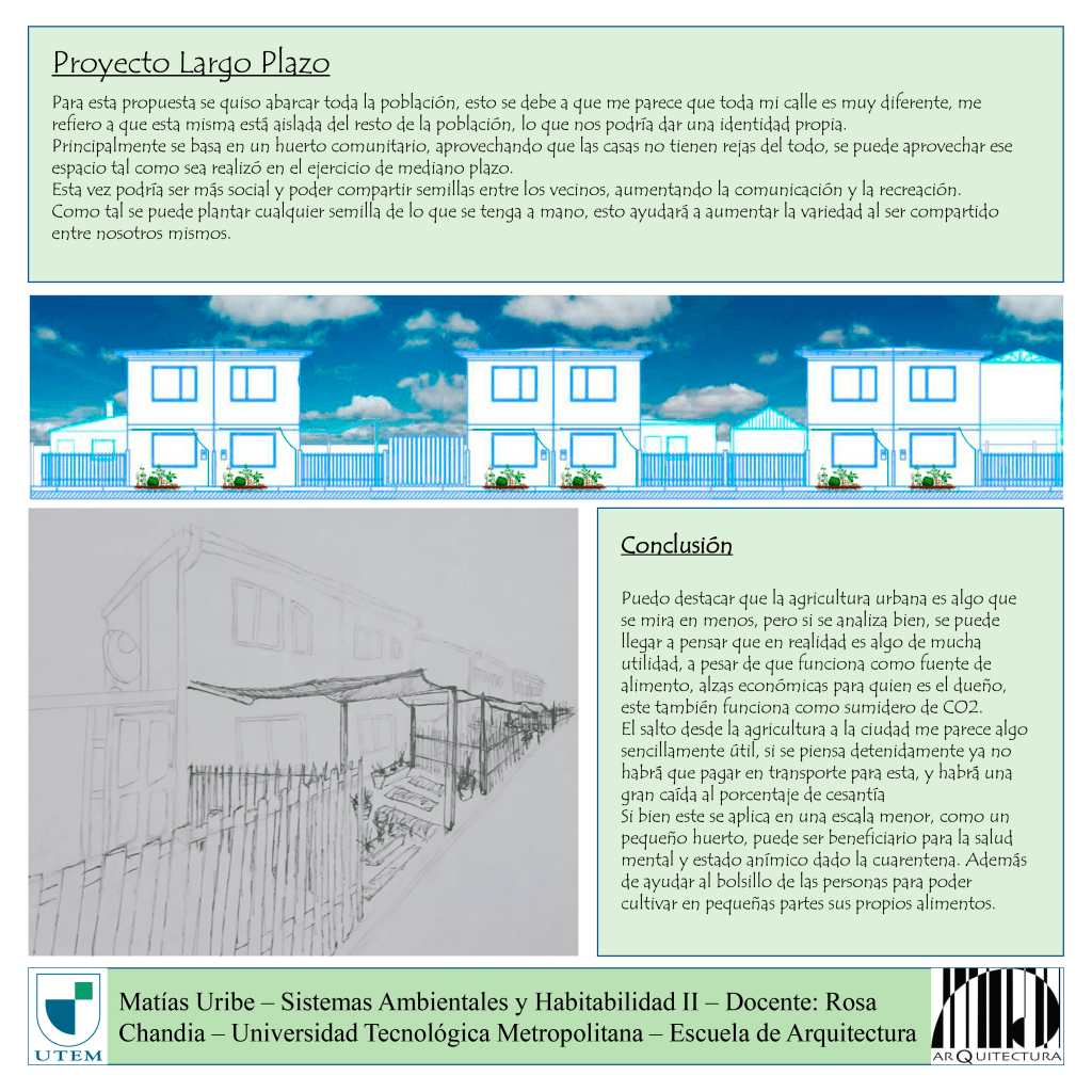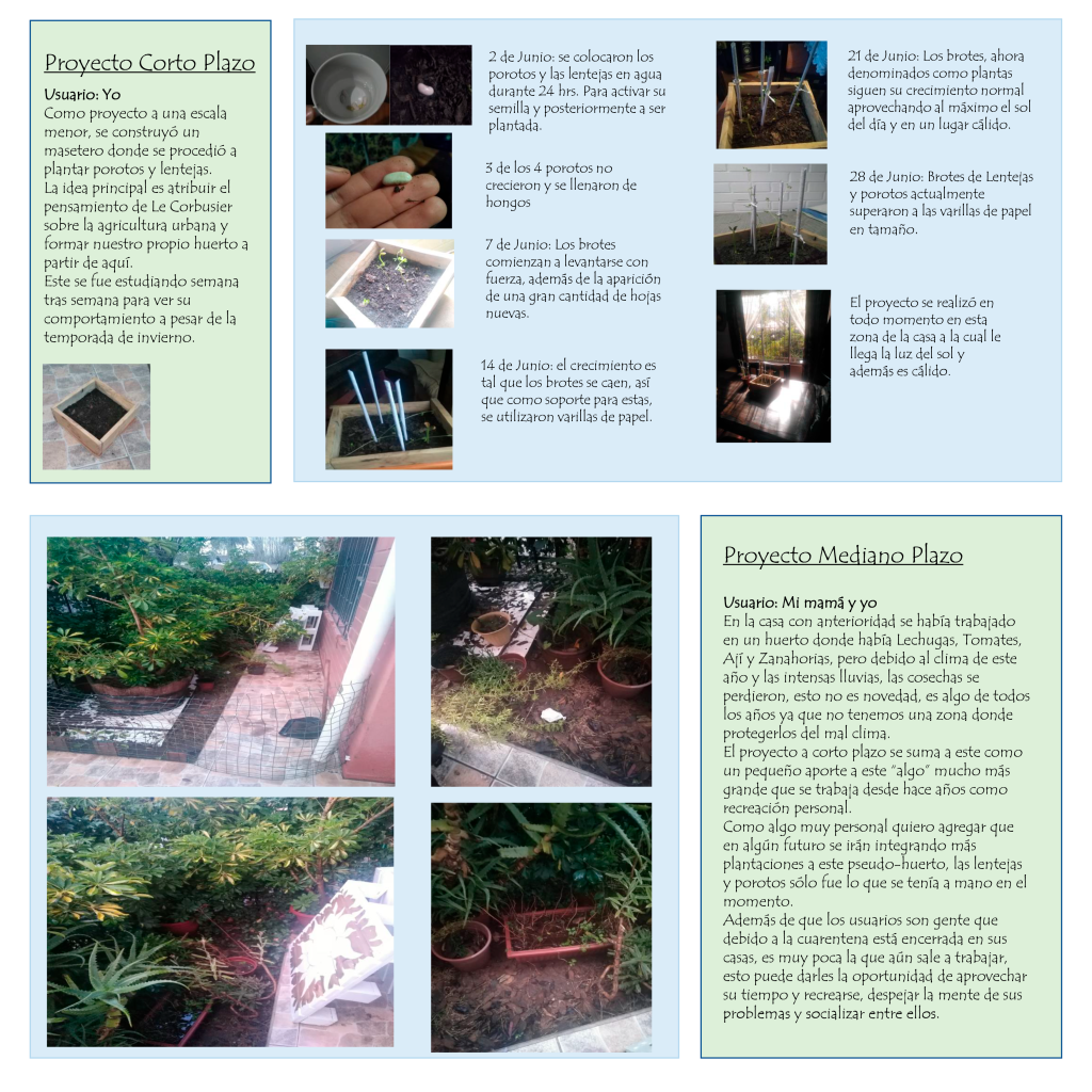 Para continuar este proyecto en pequeña escala a través de nuestro experimento de plantar «algo», se denominó como Proyecto a Corto Plazo, para luego llevarlo a una escala un poco mayor, el cual podía ya ser algún tipo de intervención dentro de nuestro mismo recinto. y para concluir este ejercicio se debía agrandar aún más la escala del proyecto, este ya podía ser llevado como un proyecto vecinal, o siguiendo dentro de tu mismo recinto, eso ya es decisión propia.