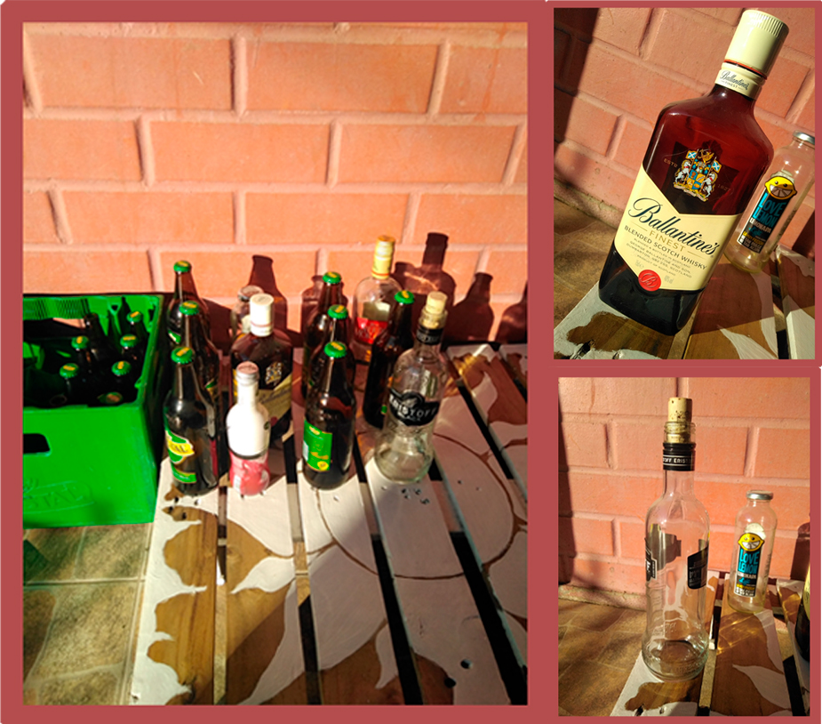 Como búsqueda de un material el cual estorbara en el hogar y pudiese tomar como un proyecto de reciclado, llegué a las botellas de vidrio. En este hogar las botellas de Vidrio abundan por todas partes, y es un hecho de que muchas de ellas son de licores, o sea, no retornables.