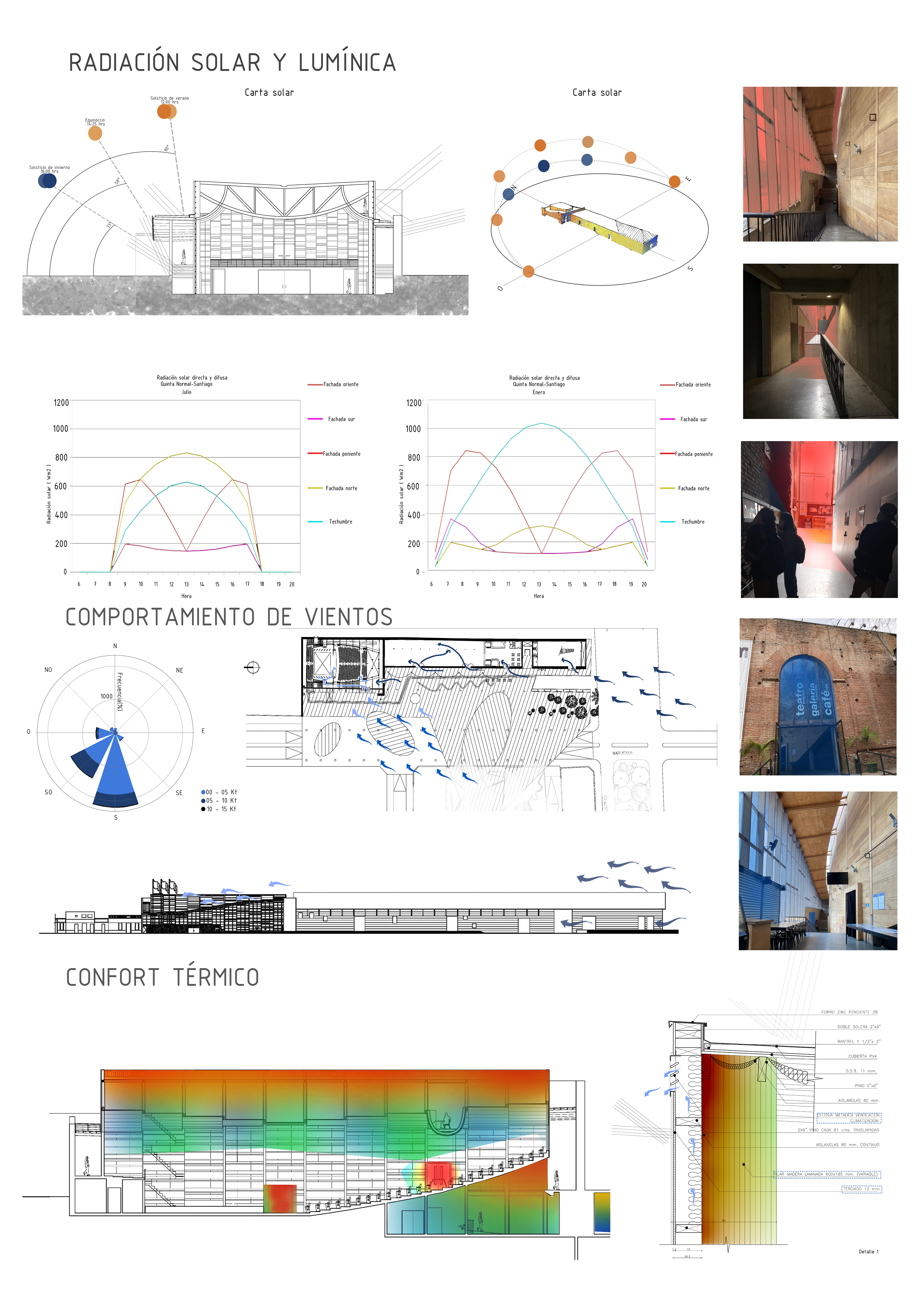 En ámbitos térmicos, la combinación de distintas técnicas constructivas entrega experiencias particulares en el recorrido de este centro, dando a conocer que la climatización y el comportamiento de un material puede generar diferencias en el ambiente, lo cual, se traduce en la disminución de la demanda energética de calefacción o refrigeración.