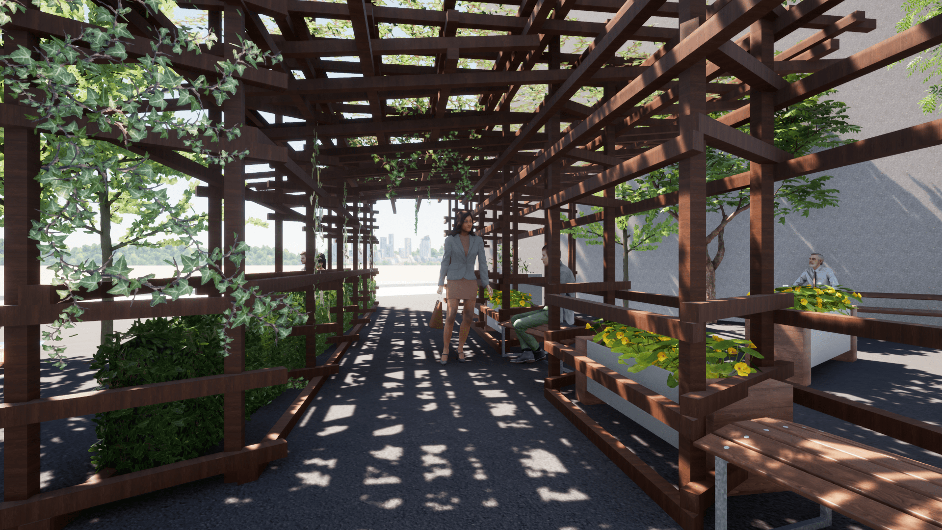 La propuesta esta sujeta a una mediana escala y no invasiva para que pueda ser modificada en un futuro si las condiciones lo permiten. El objetivo es dar mayor estabilidad a la zona desde un punto social-recreativo y climático que permita un recorrido no sofocante y peligroso para grupos vulnerables y en general.